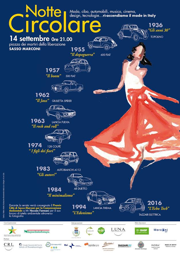 I promotori e i partner della ‘Notte Circolare’ sono indicati nella locandina QUI allegata, dove trovare anche maggiori dettagli sulle auto che mercoledì sera sfileranno in piazza a Sasso Marconi.